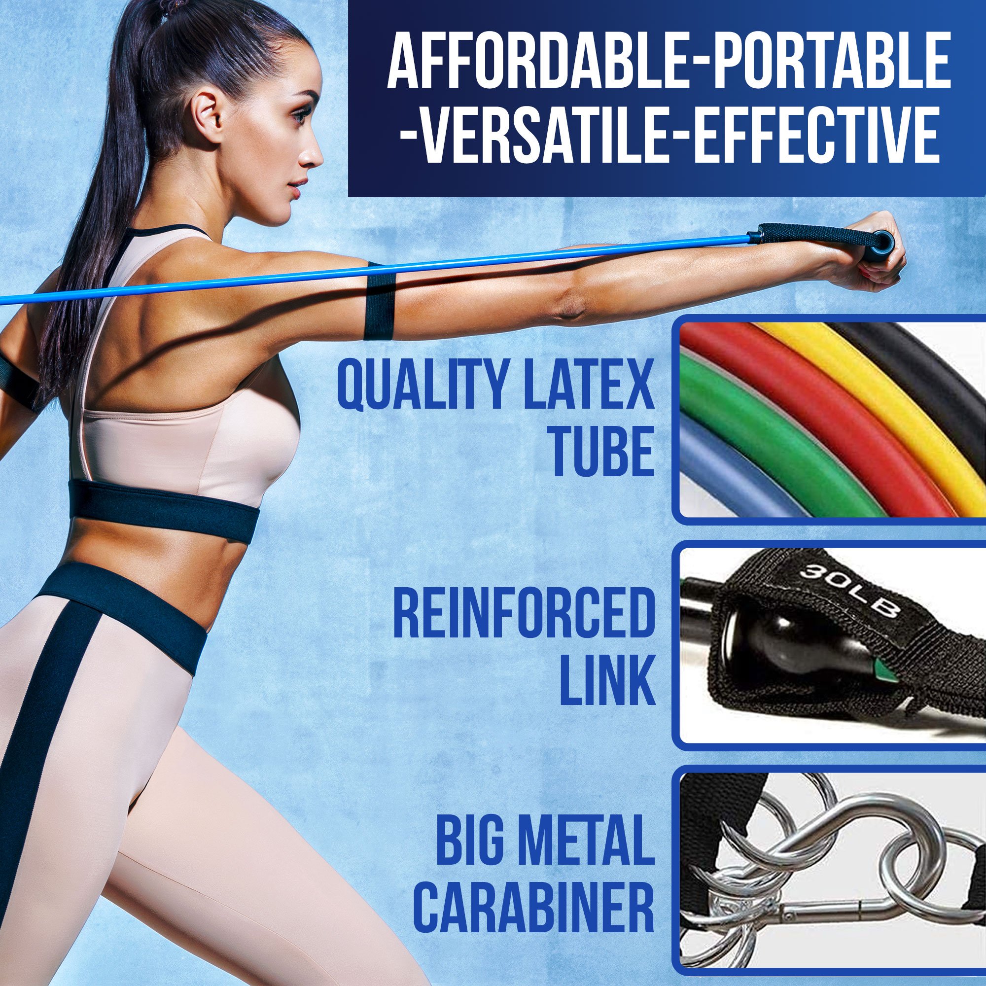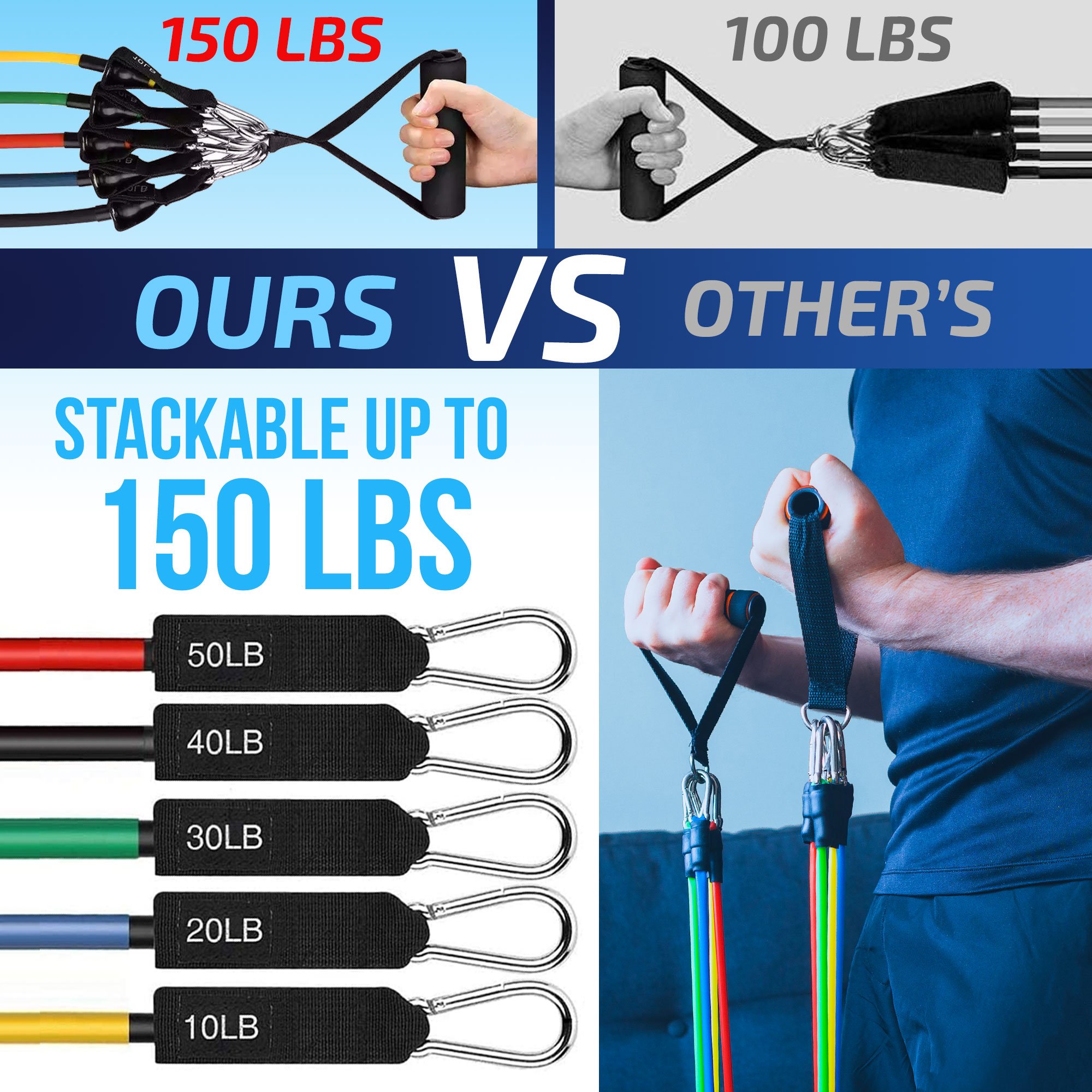 • Durable & Lightweight: All exercise bands are 36" in length, and can be used alone or grouped in any combination to give you a maximum of 150 lbs.